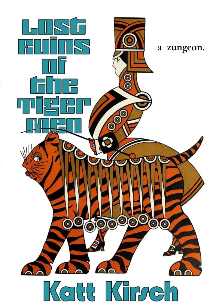 Lost Ruins of the Tiger-men is a 6 page zungeon for Old School Essentials by Katt Kirsch. In it, large catlike beasts have begun invading a local village, and you must infiltrate the temple of the Tiger cult to get to the bottom of it. It’s unpublished, at this stage, but I hope it gets put up on their itch.io page soon (update: it’s available here!).