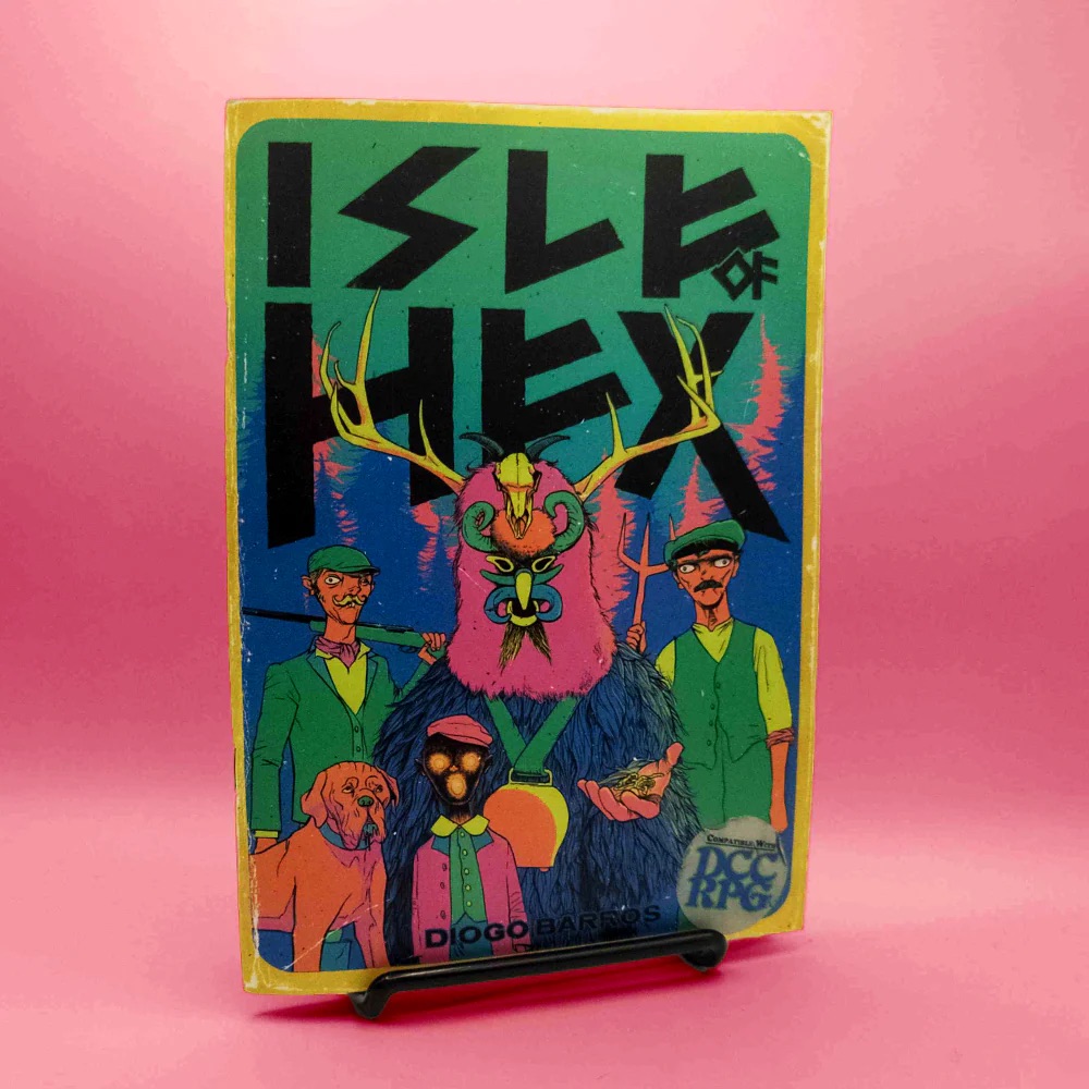 Isle of Hex is a 64 page module for Dungeon Crawl Classics, written and illustrated by Diogo Barros. In it, you explore an island full of terror and comedy, featuring a semi-modern setting filled with cults and class politics. I was provided a digital complementary copy; this one would be best in print, though.