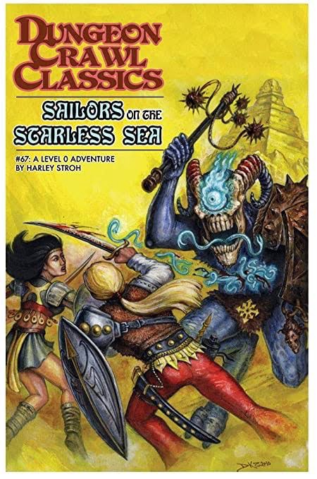 Sailors on the Starless Sea is a 15 page module for Dungeon Crawl Classics by Harley Stroh. It’s a funnel, designed to cull a score of level-zero characters to a party of level-1 ones. I’ve run a few funnels before, and a few in the rules-adjacent Mutant Crawl Classic, a game I should probably review by itself. I haven’t delved into the deep archives that are the DCC line of modules, but I find this being recommended repeatedly.