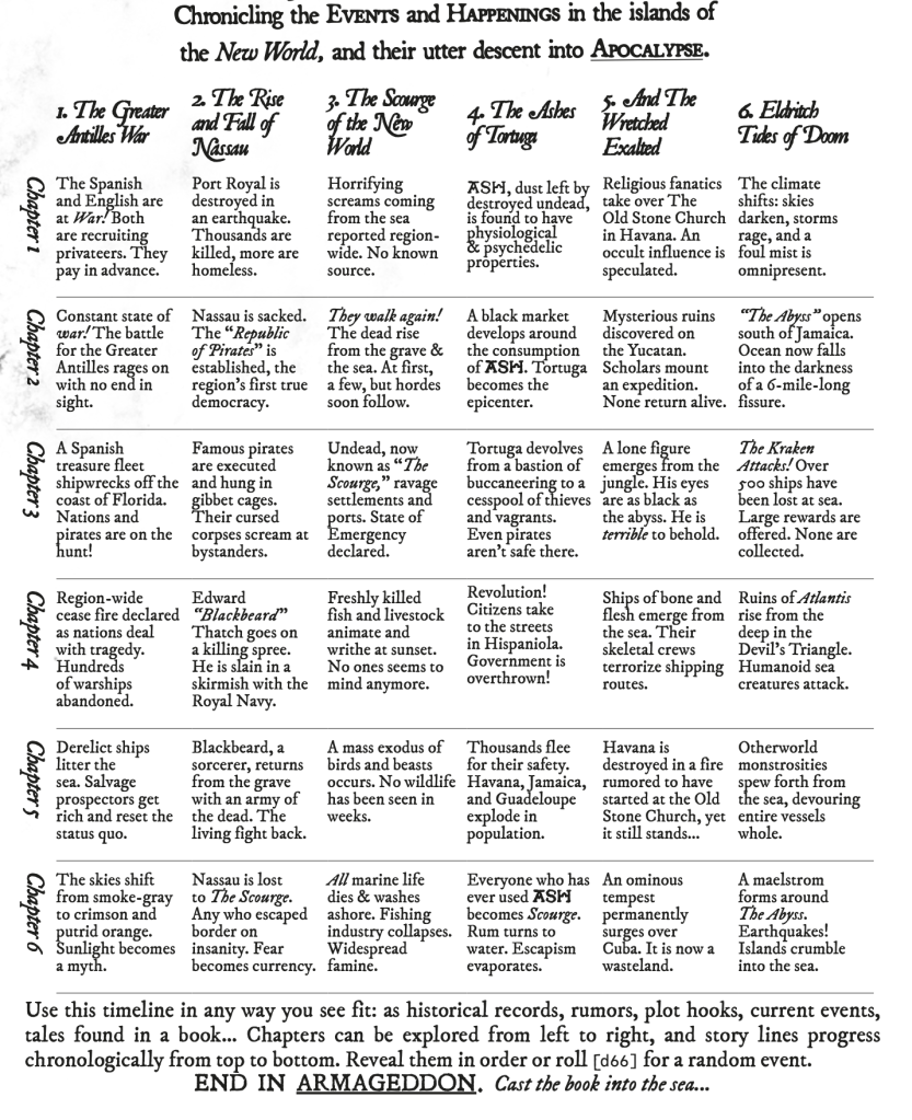 - 6 unique ambiences, hazards, discoveries or omens (something is always in sight)
