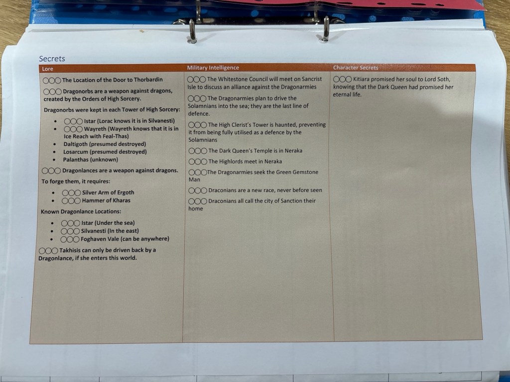 - Once you’ve written them, go back and add this landmark to the adjacent hexes, so you know what line-of-sight is.